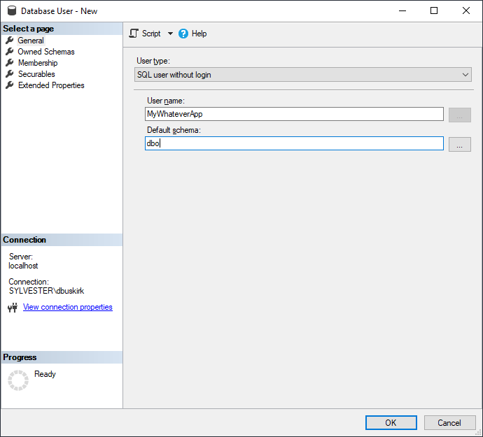 CREATE USER TheWhateverApp WITHOUT LOGIN;